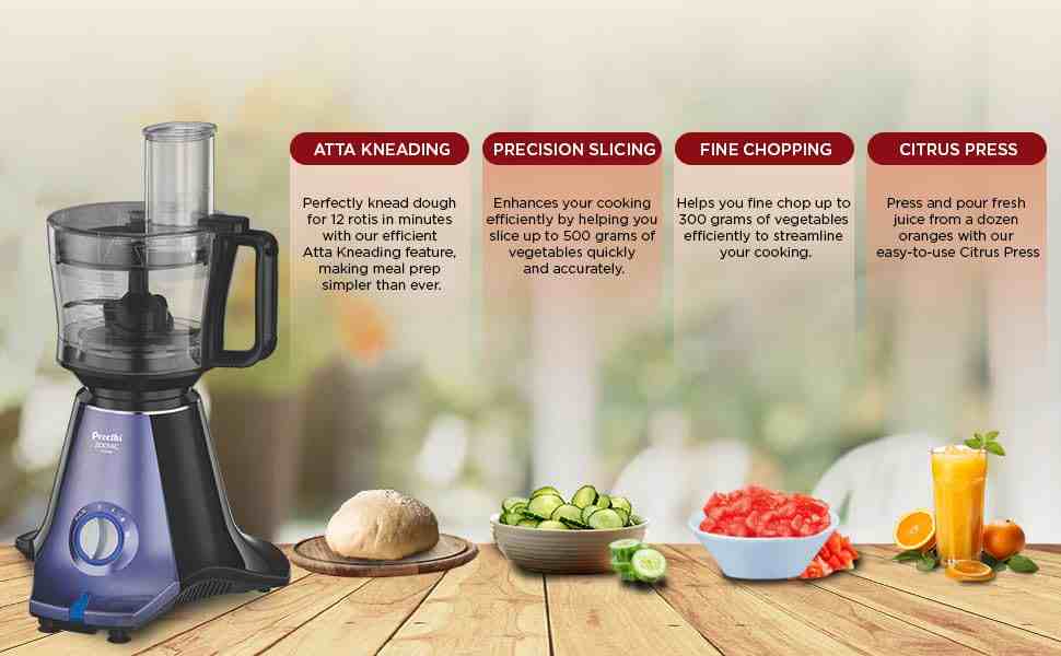 You can knead atta in just one minute, chop vegetables in two pulses, grate and slice vegetables within seconds, mince meat efficiently, and even use the citrus press for fresh juice. For busy households, this feature saves both time and effort.