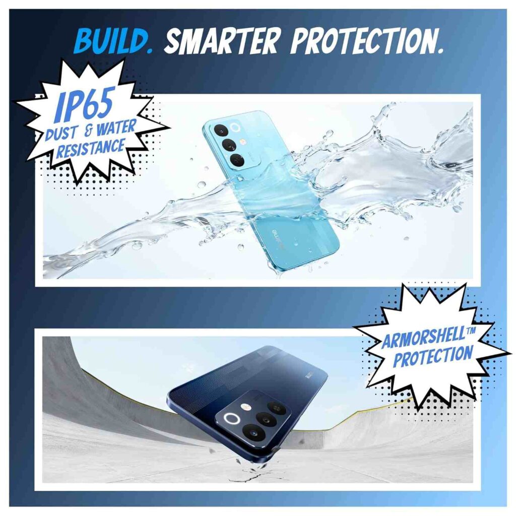 realme has added IP65 dust and water resistance, which is a valuable feature at this price point. The phone can handle splashes, light rain, and dusty environments without issues. This adds confidence for daily usage, travel, and outdoor activities. The Nitro Blue color variant also gives the phone a fresh and modern look, while the slim 8mm thickness keeps it comfortable to hold despite the large battery.