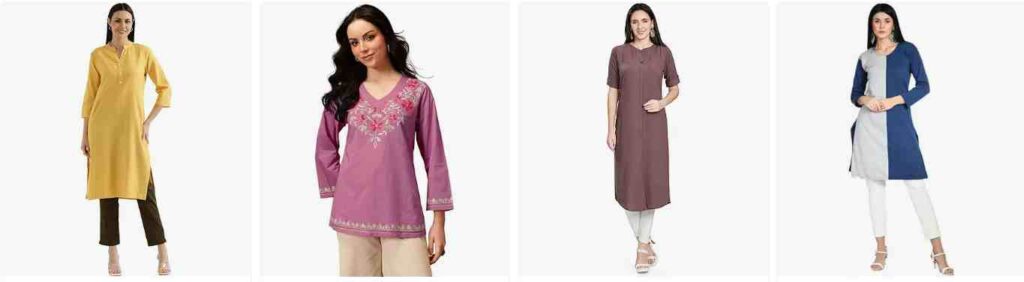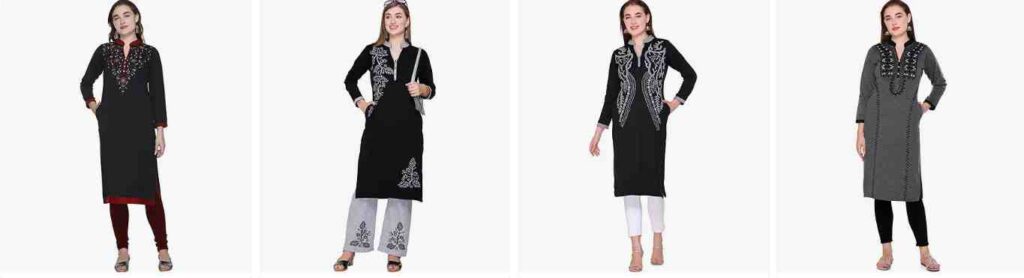 Online marketplaces like Amazon, Myntra, and Ajio have a great range of winter kurtis in all sizes and budgets. Look for: